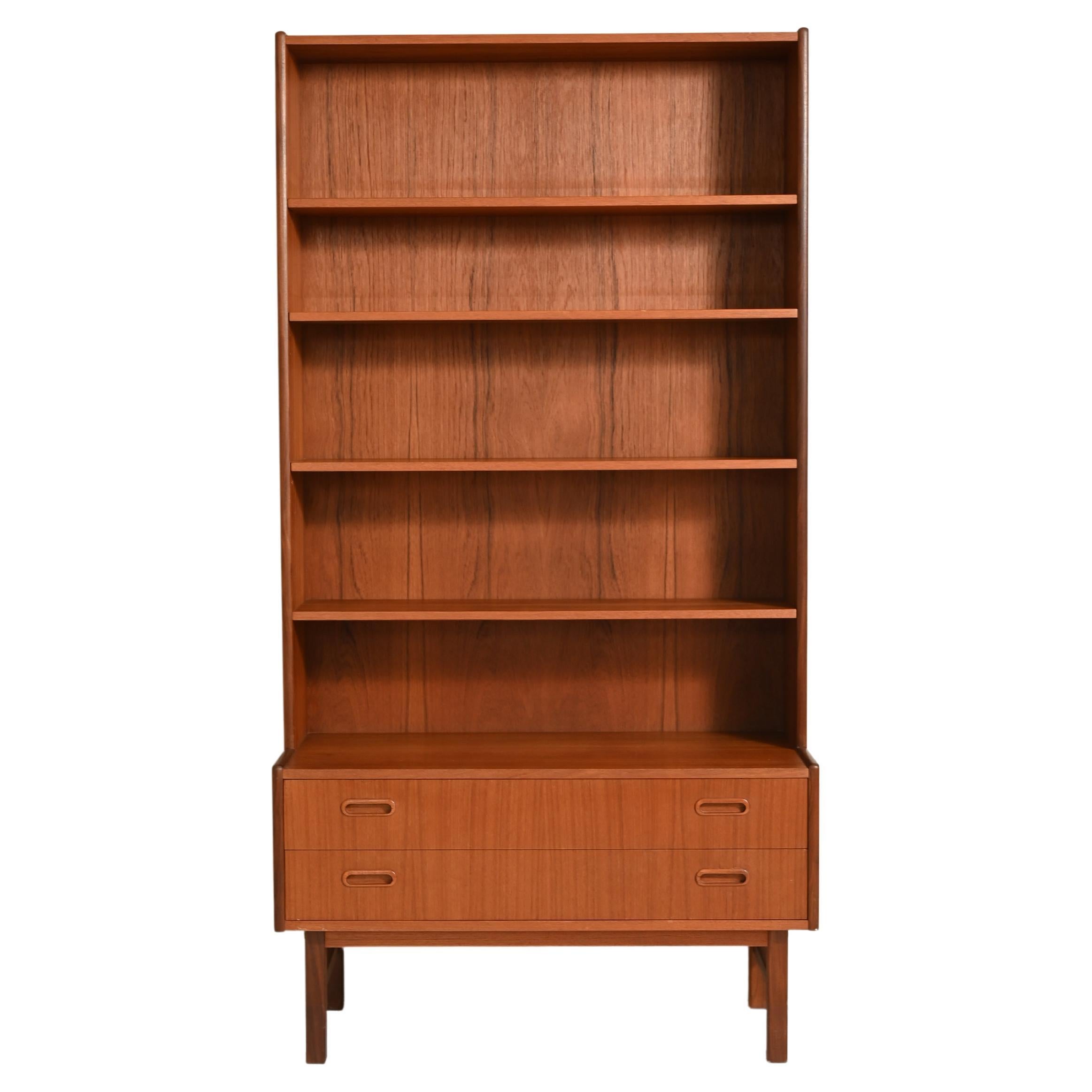 Narrow Danish Teak Bookcase with Dipped Drawers For Sale at 1stDibs